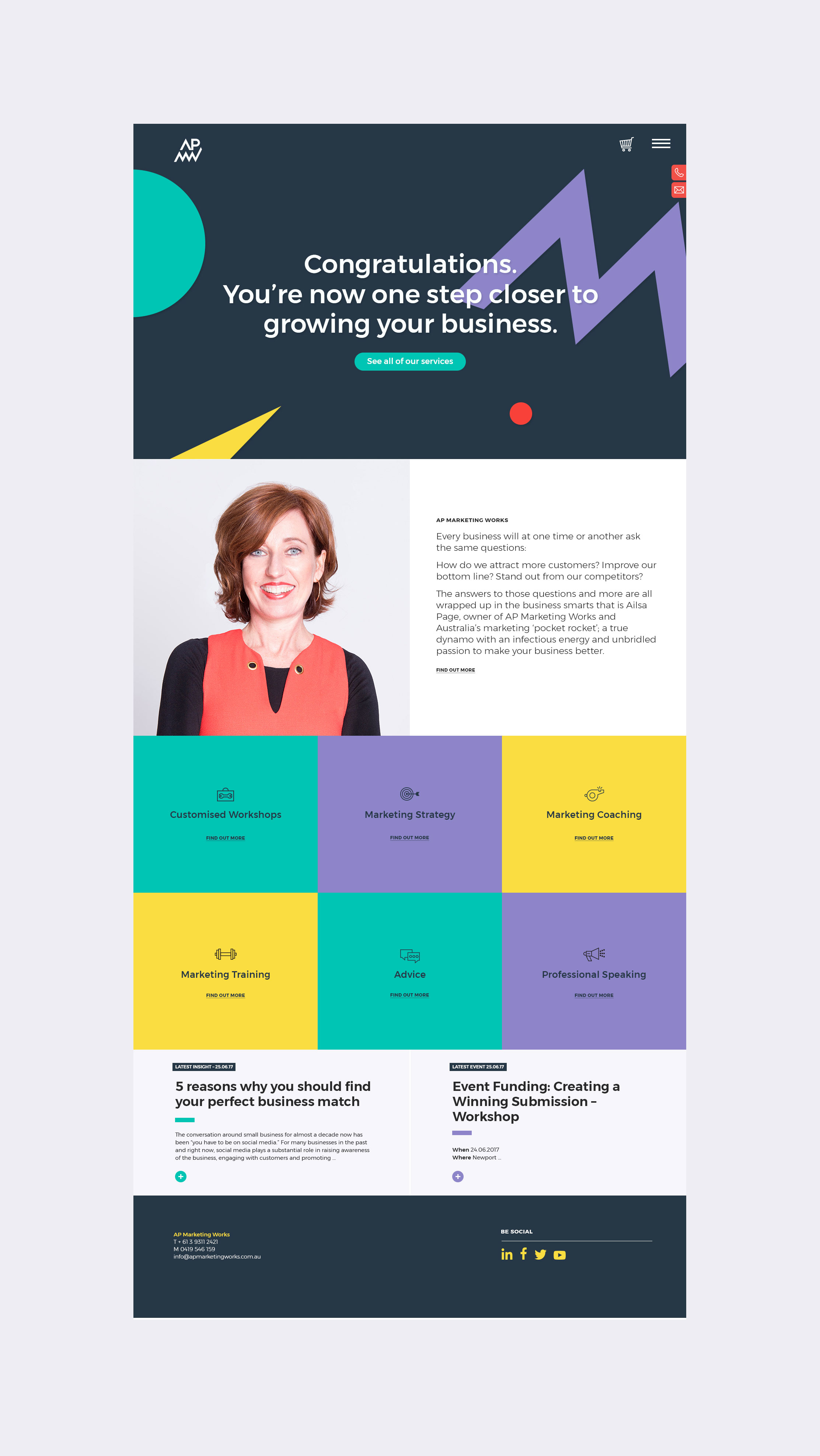 Ailsa Page is the sole owner of AP Marketing Works. She’s known for her infectious energy and joy she brings to her work – that is making other people’s businesses better.